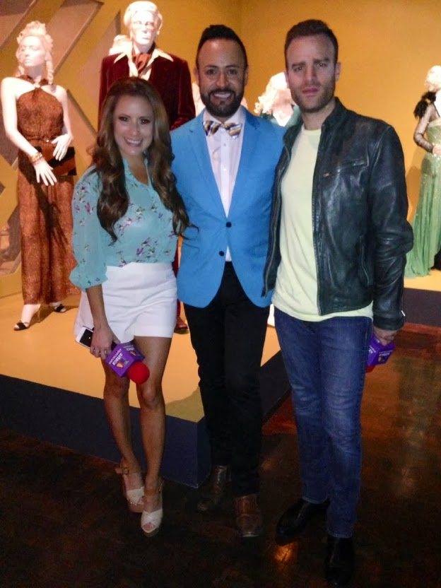 Nick Verreos with TV Azteca Siete's Linet Puente and Maximiliano Villegas filming for "Hablemos Del Oscar" ("Let's Talk About The Oscars") TV Special--FIDM Museum
